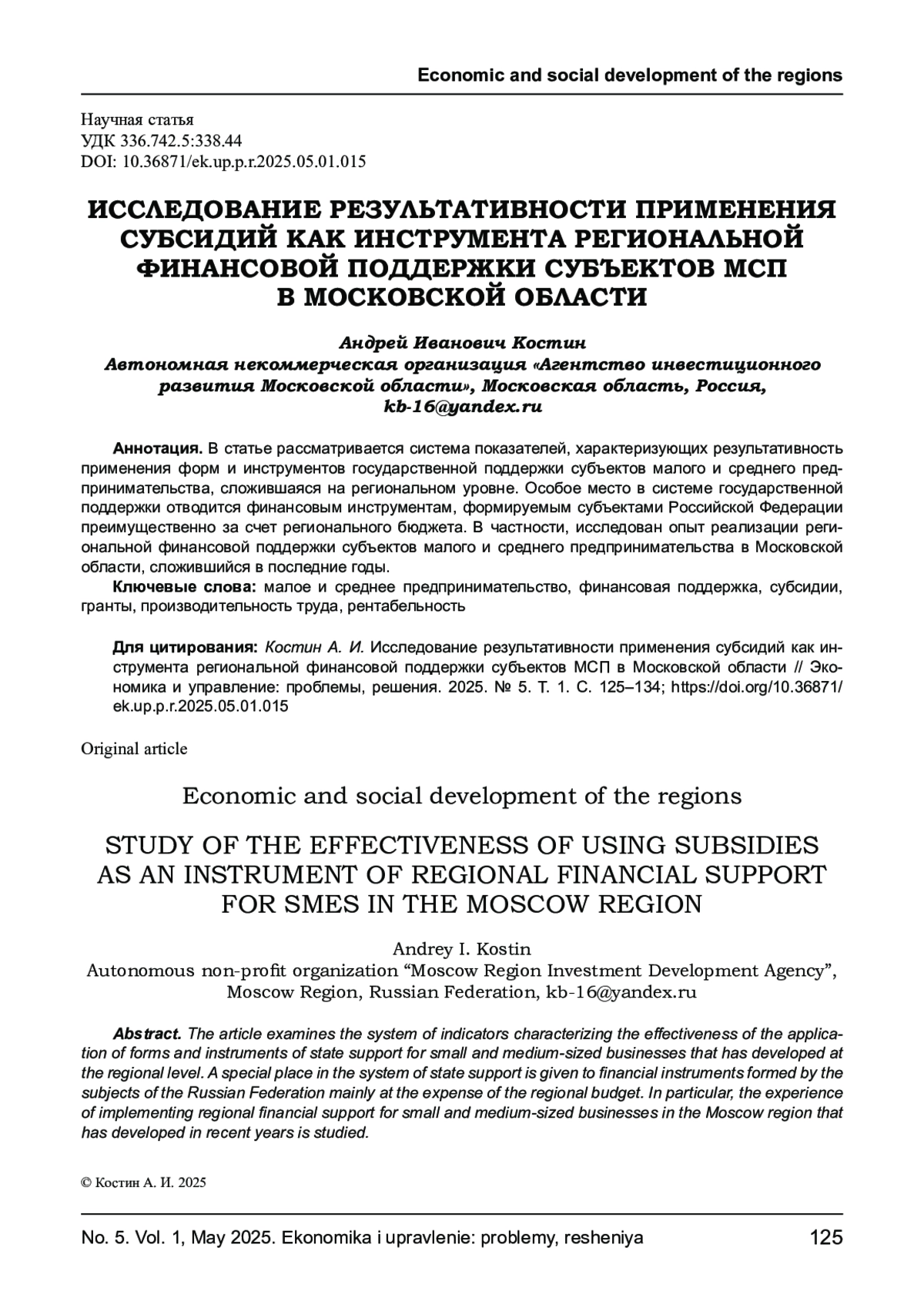 6. Охрименко А. В., Гачегов М. А. Оценка эффективности поддержки малого и среднего предпринимательства // Вестник Московского университета. Серия 6: Экономика. - 2023. - № 4. - С. 124-146. DOI: 10.55959/MSU0130-0105-6-58-4-6 EDN: CJIMUH