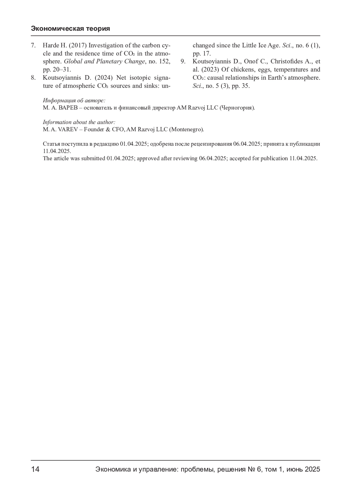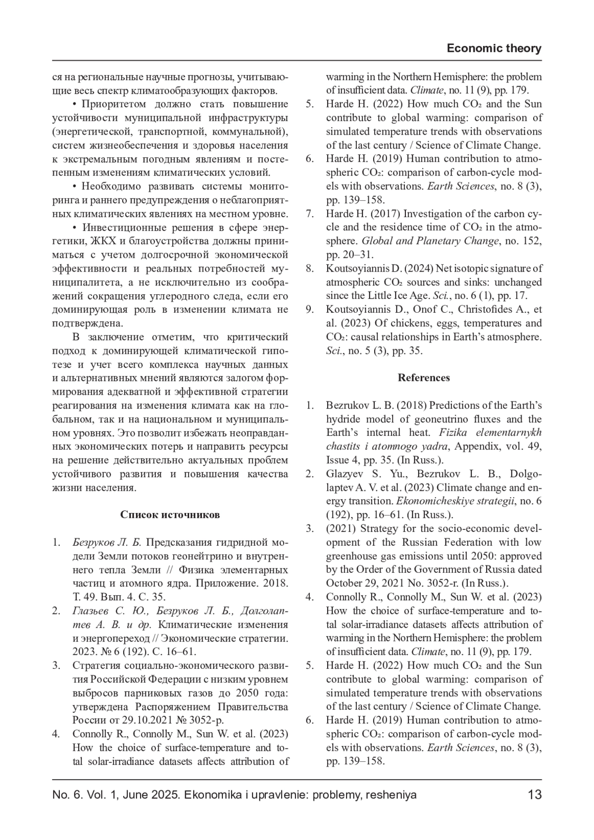 В статье проводится критическая верификация доминирующей гипотезы об антропогенном углеродном следе как основной причине современных климатических изменений. Анализируются данные по выбросам CO2 и ключевым климатическим показателям за индустриальный период с использованием статистических методов, включая корреляционный анализ и тесты причинности. Представлен обзор методологических проблем в оценках Межправительственной группы экспертов по изменению климата (МГЭИК) и используемых климатических моделях, включая вопросы гомогенизации данных и выбора реконструкций солнечной активности. Результаты указывают на слабую или неоднозначную корреляцию между антропогенными выбросами CO2 и глобальными климатическими изменениями, а в ряде исследований предполагается, что изменения температуры предшествуют изменениям концентрации CO2. Рассматривается роль альтернативных природных факторов, таких как солнечная активность, радиогенный тепловой поток Земли (включая распад калия-40) и дегазация природного водорода. Обсуждаются глубокие научные, политические и социально-экономические последствия, включая необходимость пересмотра существующих климатических парадигм, международной и национальной (российской) климатической политики, а также стратегий муниципального управления и адаптации к изменениям климата.