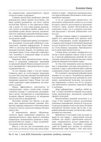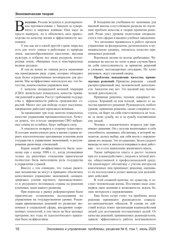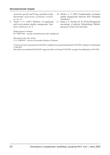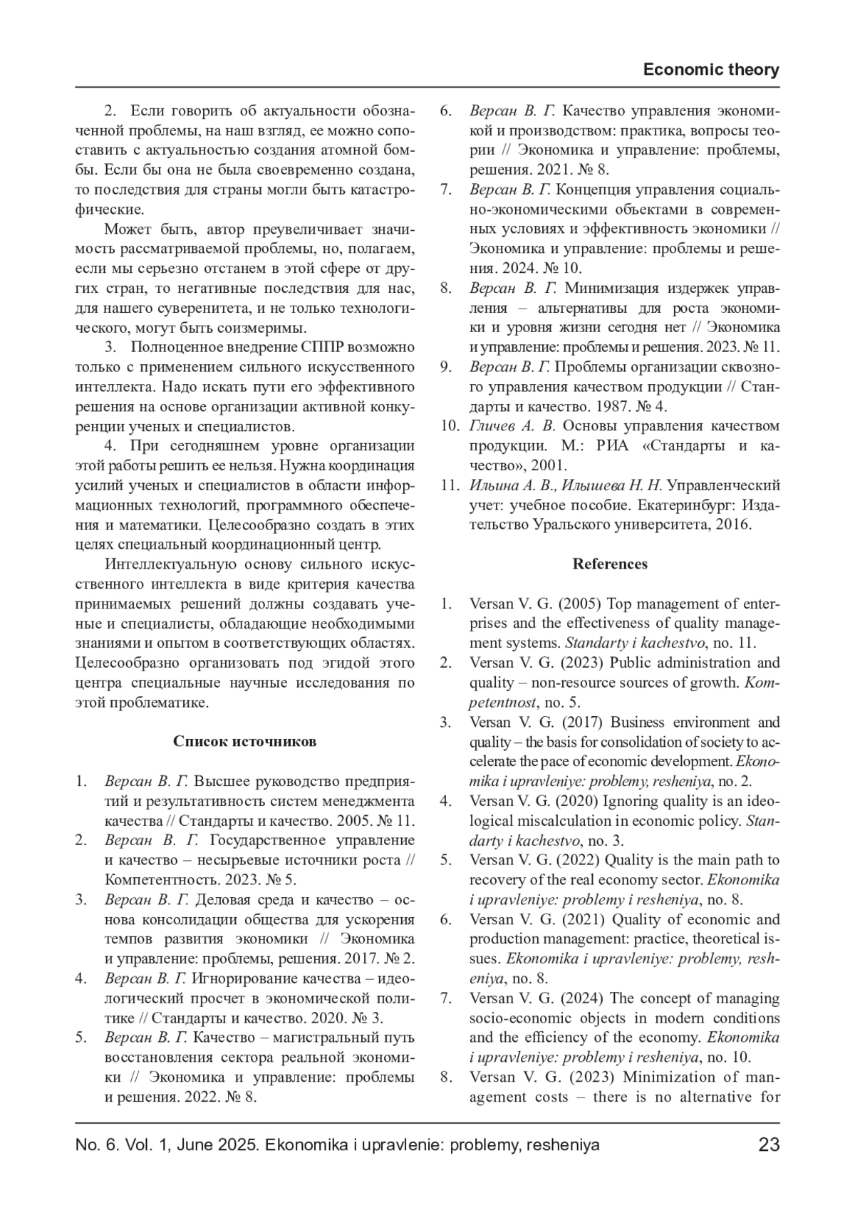 6. Версан В. Г. Качество управления экономикой и производством: практика, вопросы теории // Экономика и управление: проблемы, решения. 2021. № 8. EDN: DNWTCE