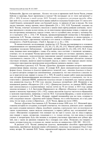 7. Иманкулова Р.М. Поэтика имени в ранней прозе А.П. Чехова: зоологический ономастикон // Ученые записки Казанского университета. Сер. Гуманитарные науки. 2016. Т. 158. Кн. 1. С. 126-132.