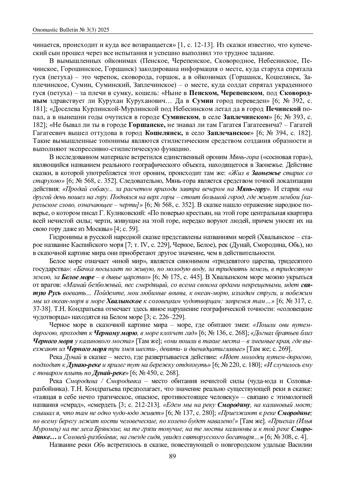 3. Кондратьева Т.Н. Собственные имена в русском эпосе. Казань: Изд-во Казан. ун-та, 1967. 247 с.