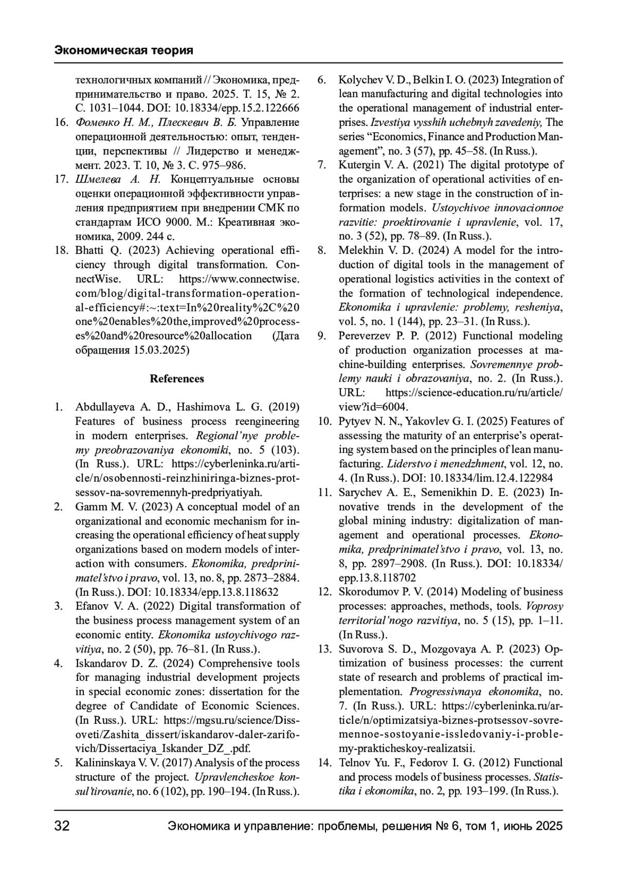 10. Пытьев Н. Н., Яковлев Г. И. Особенности оценки зрелости операционной системы предприятия на принципах бережливого производства // Лидерство и менеджмент. 2025. Т. 12, № 4. DOI: 10.18334/lim.12.4.122984 EDN: AGDTOQ