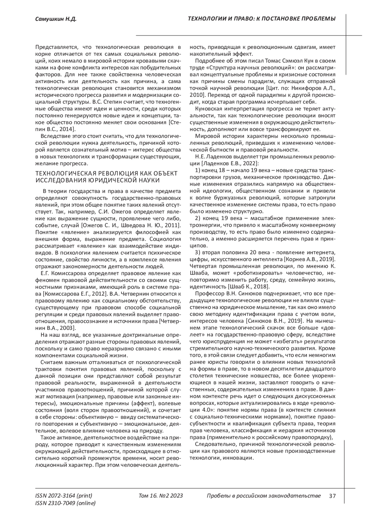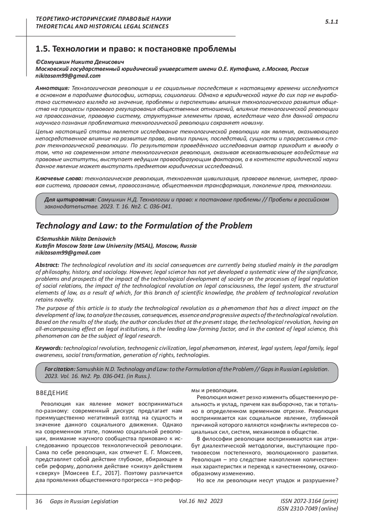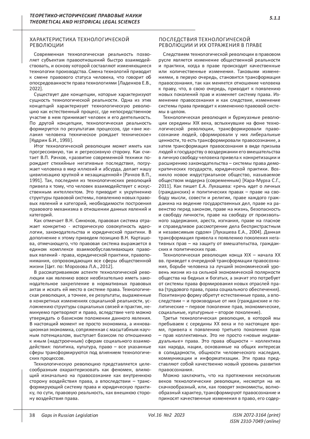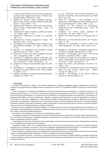7. Ладенков Е.В. Влияние технологических революций на право // Философия права. - 2022. - № 1(100). - С. 47.