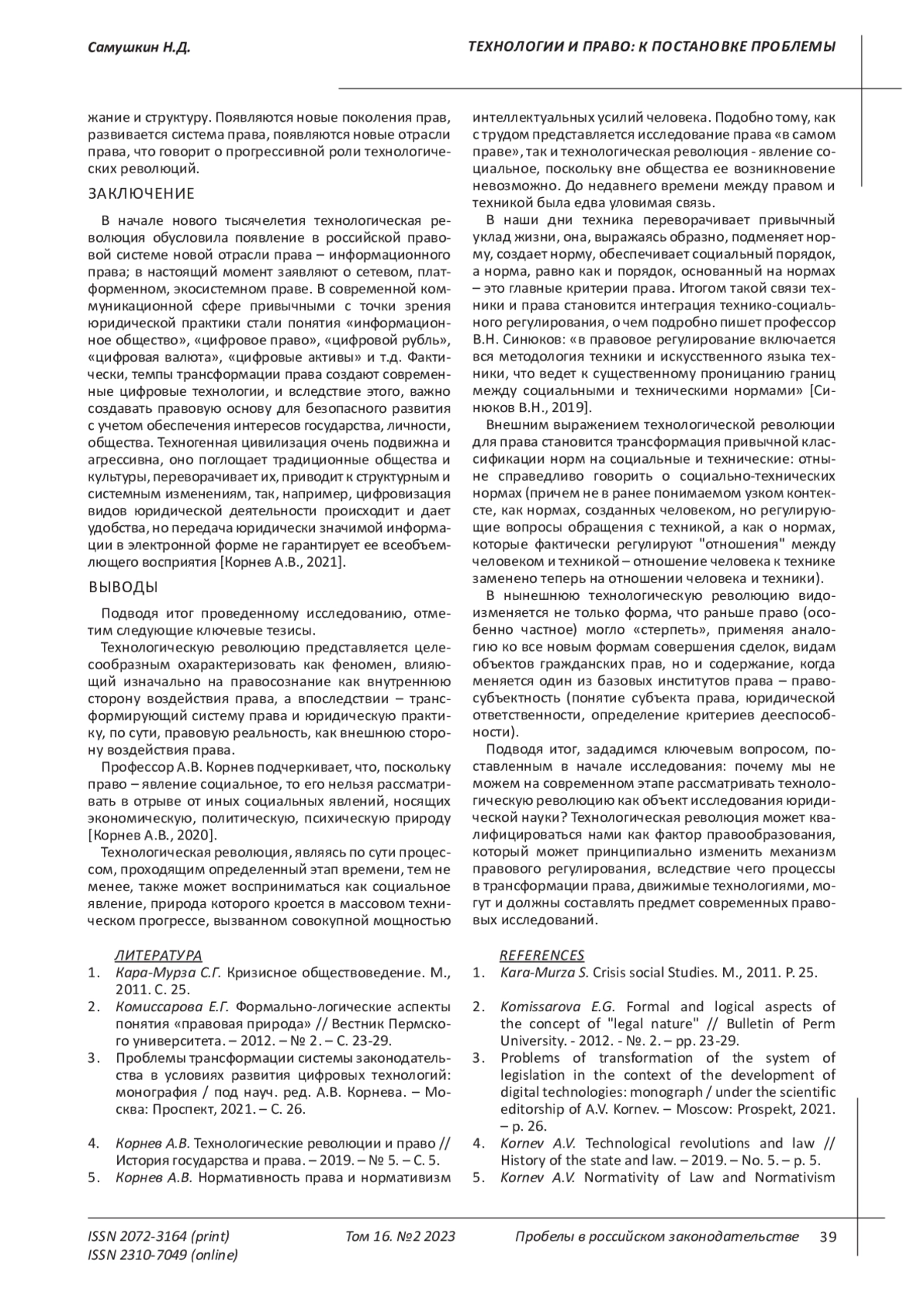 4. Корнев А.В. Технологические революции и право // История государства и права. - 2019. - № 5. - С. 5. EDN: OKIEVP