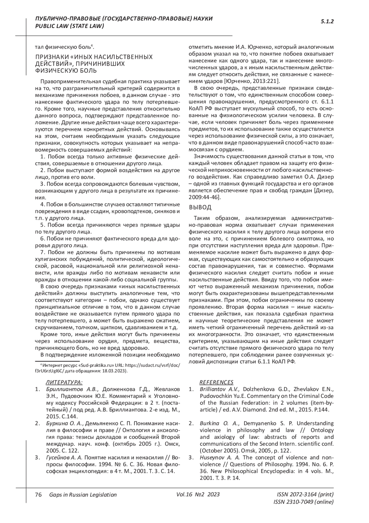 Yurchenko I.A. The concept of beatings: an analysis of judicial practice. Criminal Law: Development Strategy in the 21st Century: Proceedings of the International Scientific and Practical Conference: Collection. - M.: Prospekt, 2013. P. 221.
