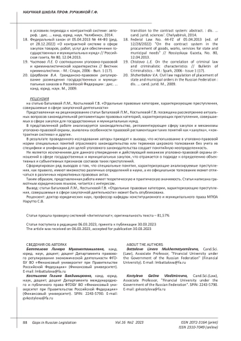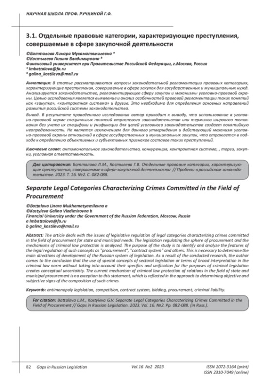 Tishchenko E.V. Criminal liability for crimes in the field of state and municipal procurement: comparative legal analysis // Issues of Russian and international law. 2016. Volume 6. No. 11A. pp. 93-107. EDN: YFOEMF