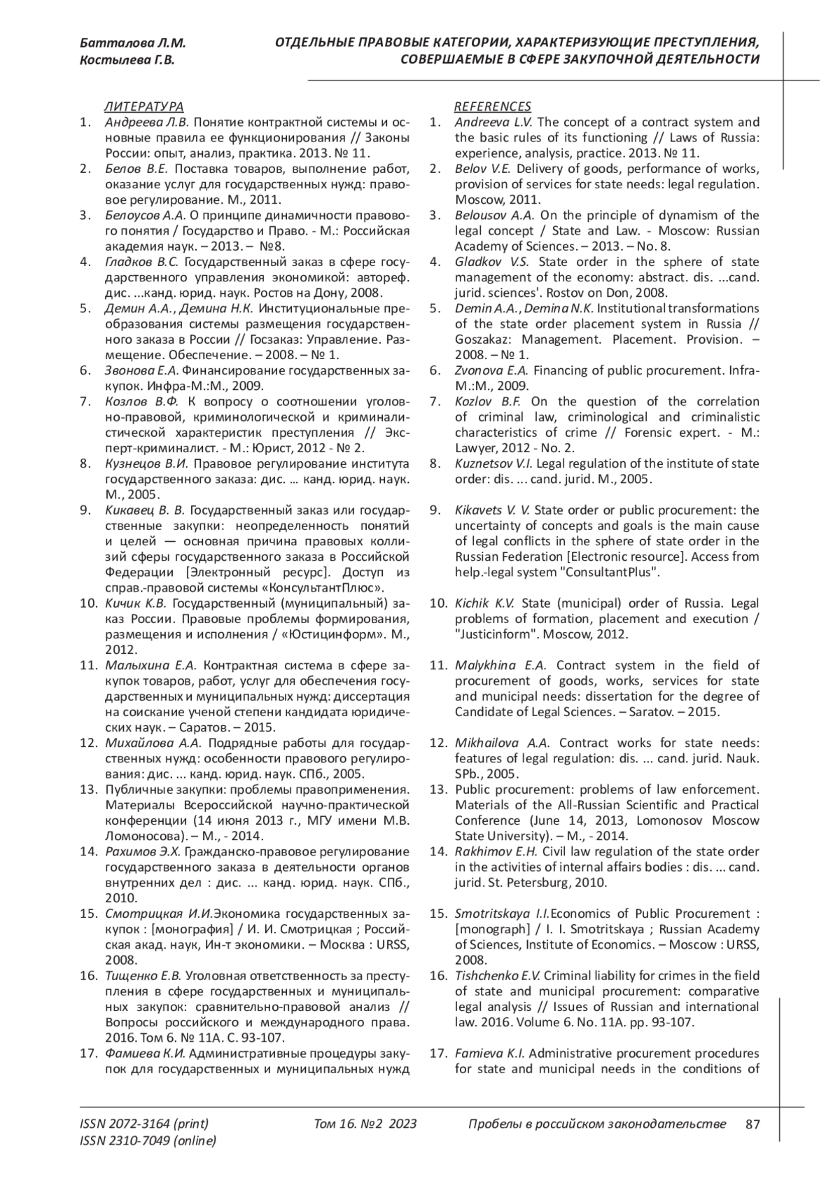 16. Тищенко Е.В. Уголовная ответственность за преступления в сфере государственных и муниципальных закупок: сравнительно-правовой анализ // Вопросы российского и международного права. 2016. Том 6. № 11A. С. 93-107. EDN: YFOEMF