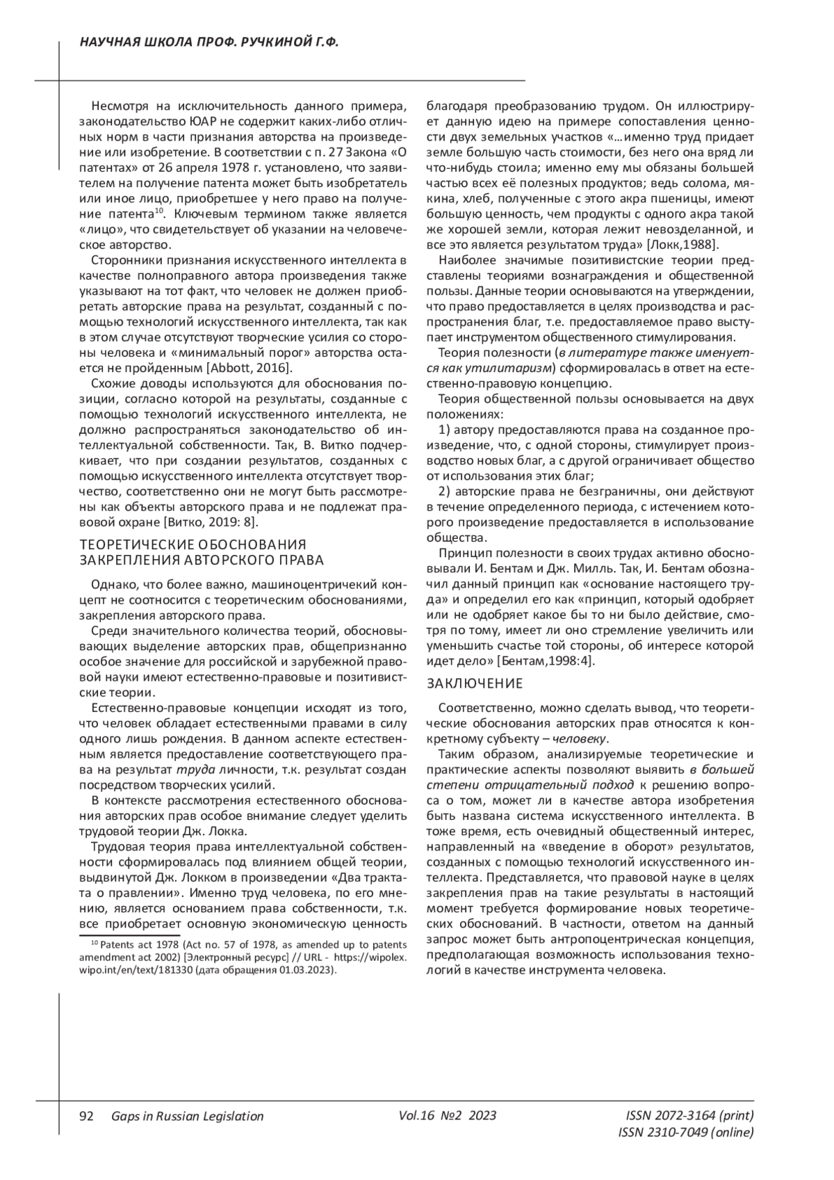3. Abbott R. I think, therefore I invent: creative computers and the future of patent law // BCL Rev. - 2016. - Т. 57. - С. 1079.