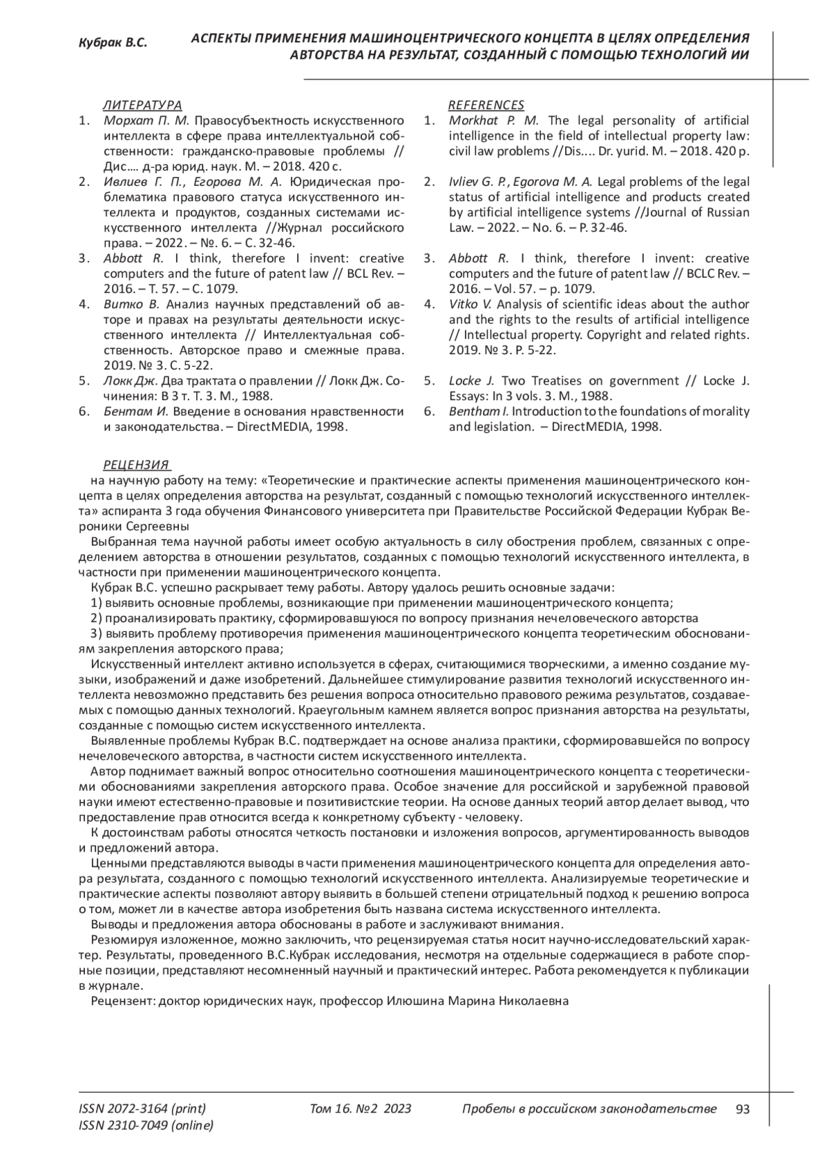 1. Морхат П. М. Правосубъектность искусственного интеллекта в сфере права интеллектуальной собственности: гражданско-правовые проблемы //Дис.… д-ра юрид. наук. М. - 2018. 420 c.