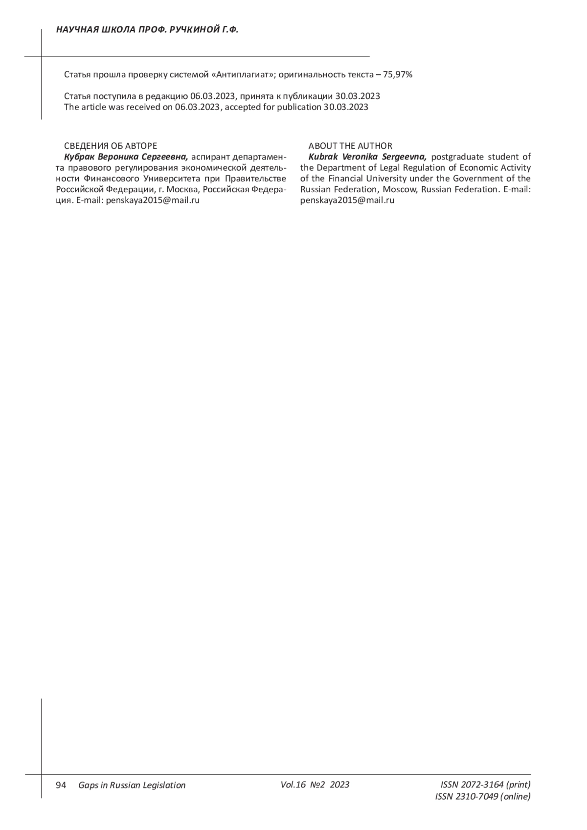 2. Ивлиев Г. П., Егорова М. А. Юридическая проблематика правового статуса искусственного интеллекта и продуктов, созданных системами искусственного интеллекта //Журнал российского права. - 2022. - №. 6. - С. 32-46. EDN: ANAGTU