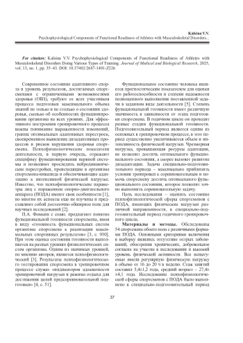 Статья: ПСИХОФИЗИОЛОГИЧЕСКИЕ КОМПОНЕНТЫ ФУНКЦИОНАЛЬНОЙ ГОТОВНОСТИ СПОРТСМЕНОВ С ПОРАЖЕНИЕМ ОПОРНО-ДВИГАТЕЛЬНОГО АППАРАТА ПРИ РАЗНОЙ НАПРАВЛЕННОСТИ ТРЕНИРОВОЧНОГО ПРОЦЕССА (2025)