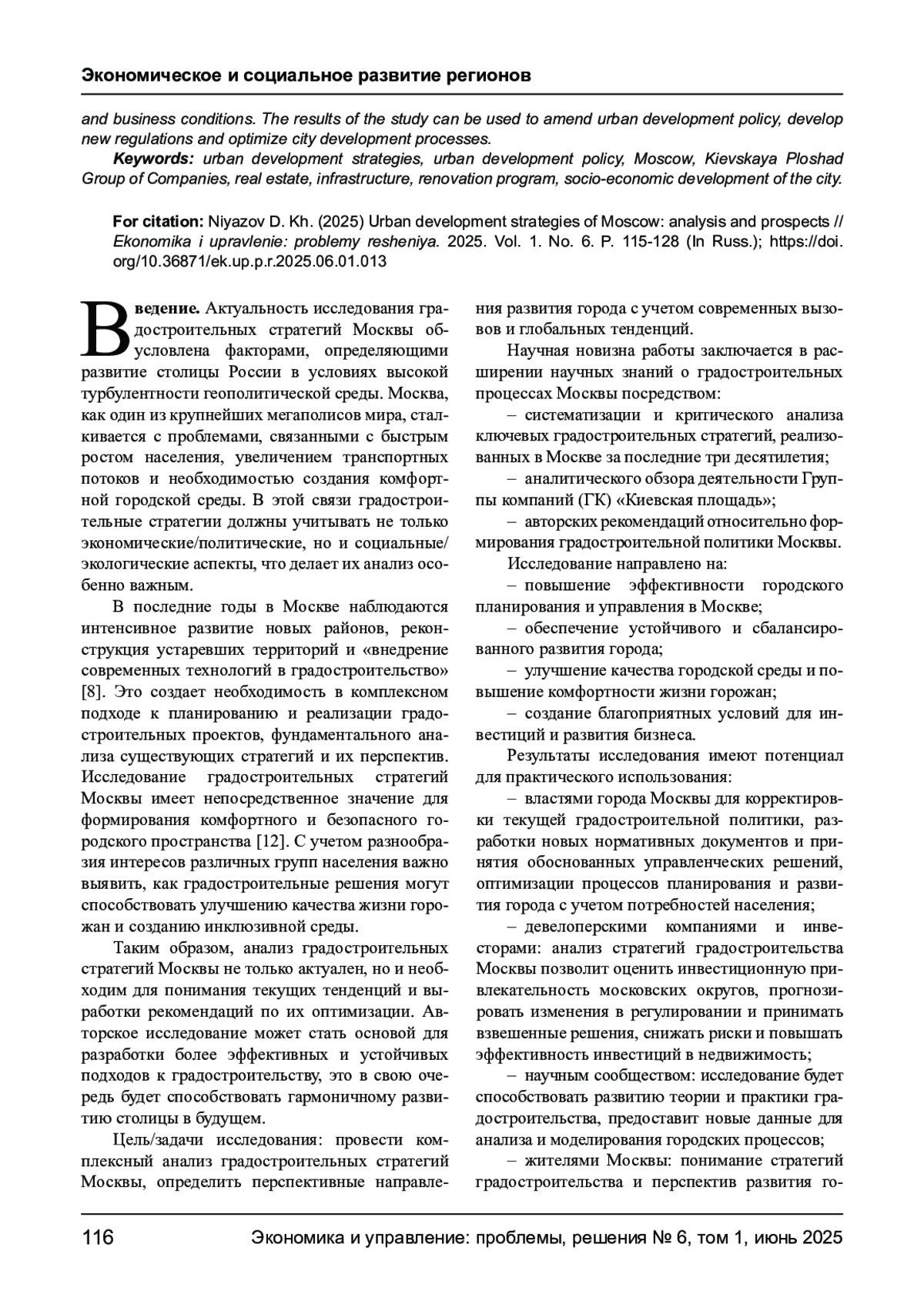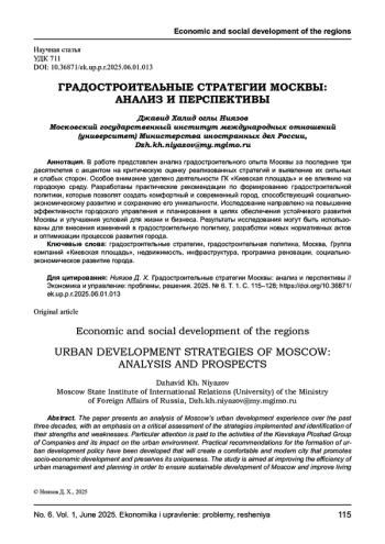Актуальность исследования градостроительных стратегий Москвы обусловлена факторами, определяющими развитие столицы России в условиях высокой турбулентности геополитической среды.