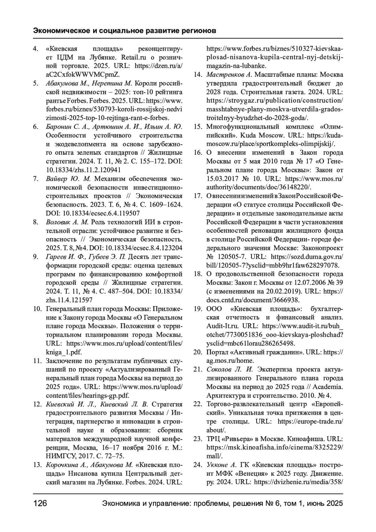 14. Мастренков А. Масштабные планы: Москва утвердила градостроительный бюджет до 2028 года. Строительная газета. 2024. URL: https://stroygaz.ru/publication/construction/masshtabnye-plany-moskva-utverdila-gradostroitelnyy-byudzhet-do-2028-goda/.