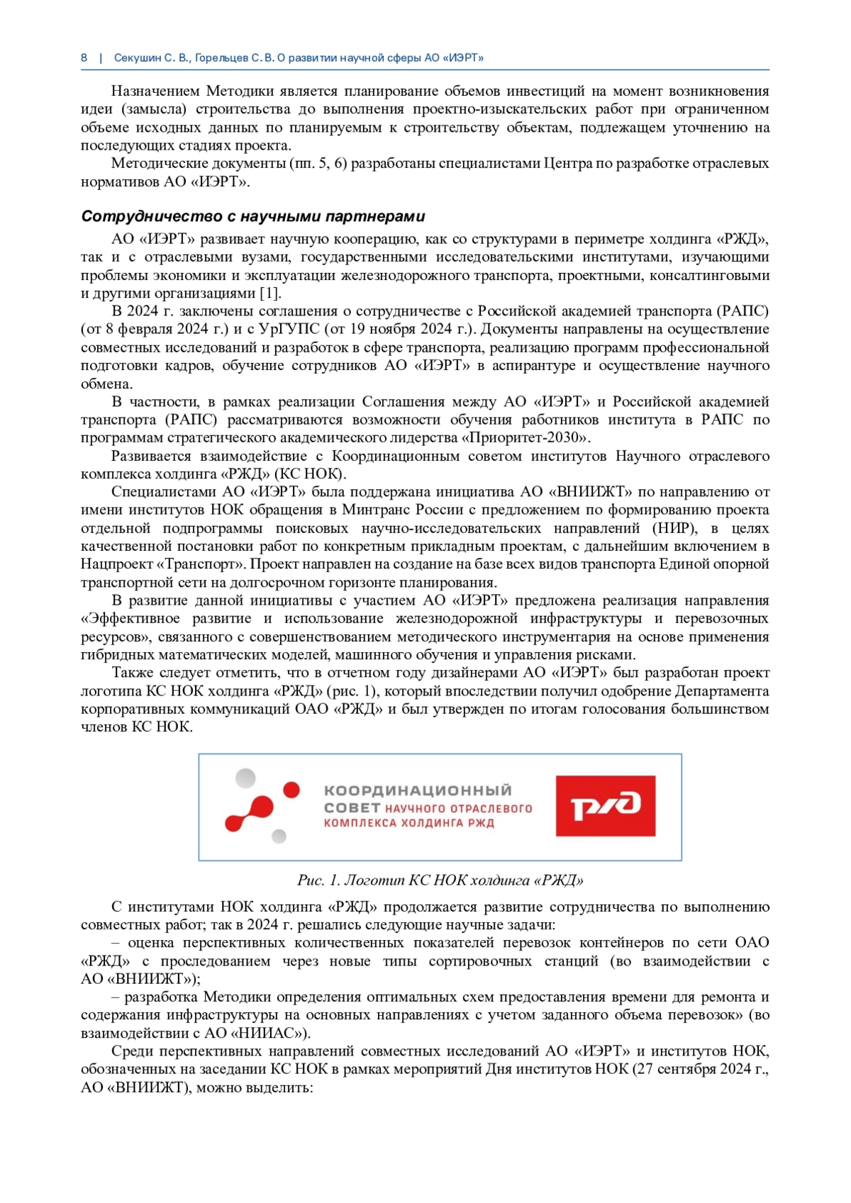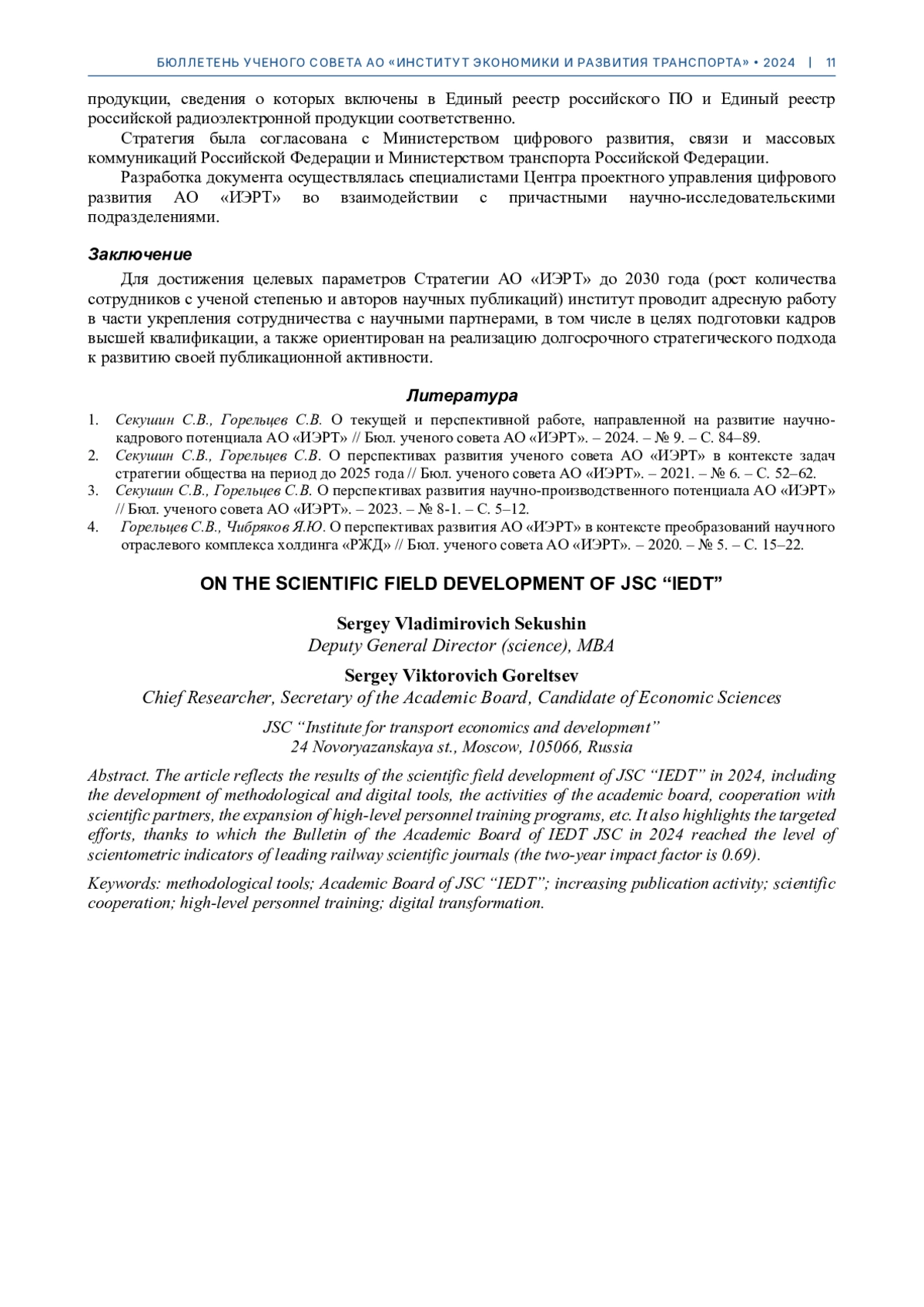 СЕКУШИН С. В., ГОРЕЛЬЦЕВ С. В. О РАЗВИТИИ НАУЧНОЙ СФЕРЫ АО «ИЭРТ» // БЮЛЛЕТЕНЬ УЧЕНОГО СОВЕТА АО "ИЭРТ". 2025. № 10-1