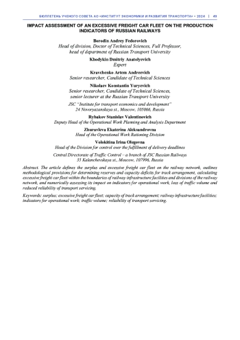 В статье сформулированы определения профицита и избыточного парка грузовых вагонов на железнодорожной сети, изложены методические положения по определению резервов и дефицитов вместимости путевого развития, вычисления избыточного парка грузовых вагонов в границах объектов железнодорожной инфраструктуры и подразделений железнодорожной сети, численной оценки его влияния на показатели эксплуатационной работы, на потери объемов перевозок грузов и снижение показателей надежности транспортного обслуживания.