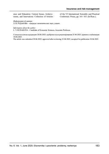 10. Шеркунов А. В. Понятие и сущность рискменеджмента / Развитие современной науки и образования: актуальные вопросы, достижения и инновации: сборник статей VI Международной научно-практической конференции. Пенза, 2023. С. 161-163.