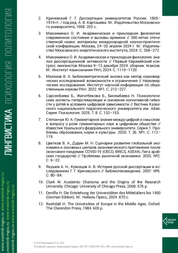 Процедура и методы. Основной метод исследования – корпусный, библиометрический и квантитативный анализ, позволяющий на основе материалов сайта «dissercat. com» и корпуса тем диссертационных исследований ряда университетов страны получить обобщённые аналитические сведения о научно-исследовательском потенциале современных лингвистических исследований.
