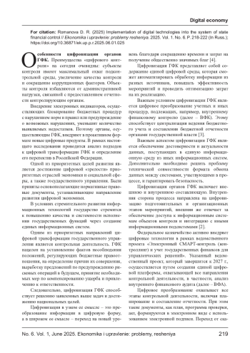 4. Лукашов А. И. Текущее состояние и перспективы цифровизации органов государственного финансового контроля в Российской Федерации // Мир новой экономики. 2023. № 17(4). С. 6-15. DOI: 10.26794/2220-6469-2023-17-4-6-15 EDN: XHIVNX