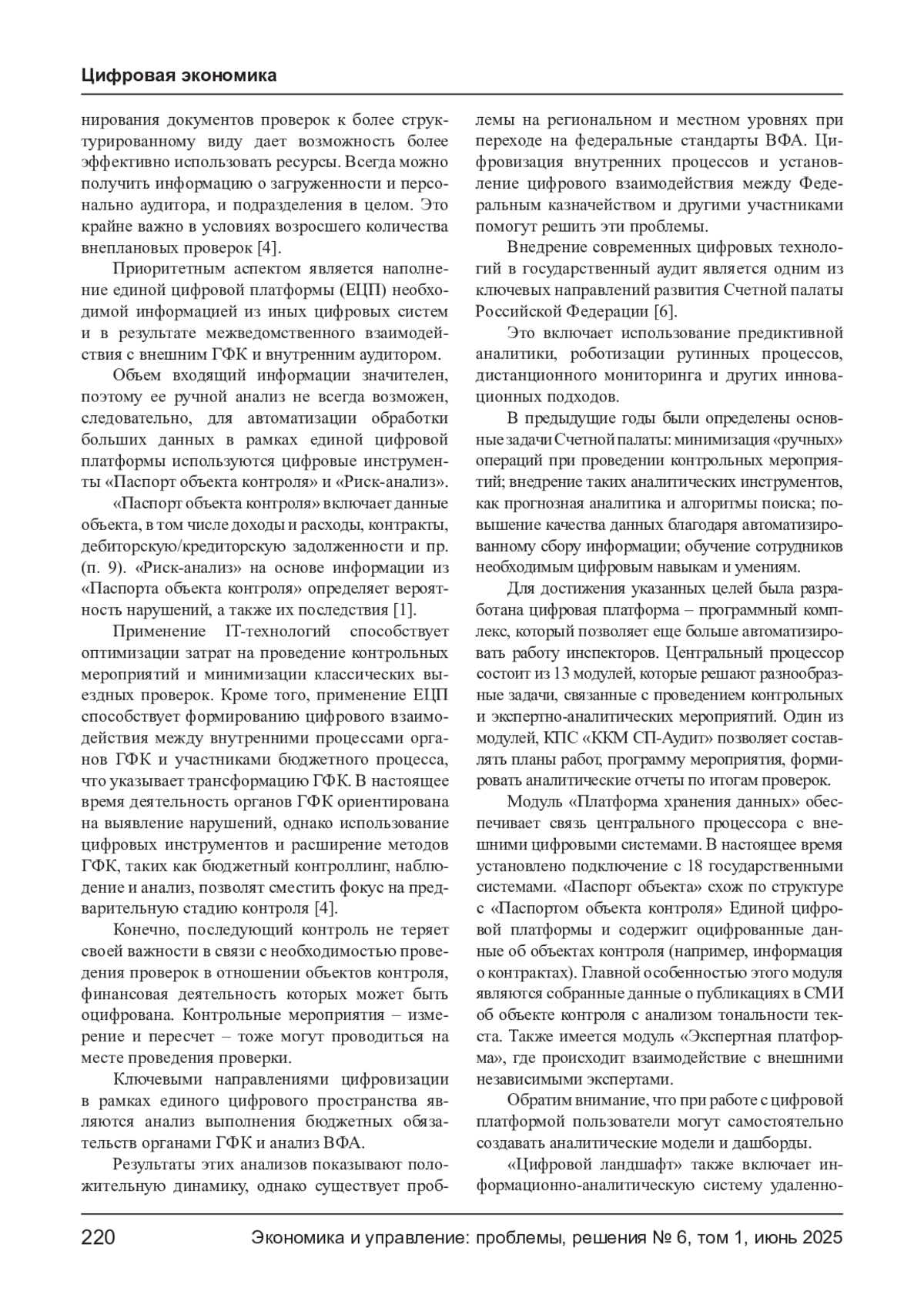 6. Чхутиашвили Л. В. Стратегия развития государственного аудита в цифровой экономике России // Право и цифровая экономика. 2022. № 4. С. 16-22. EDN: GBNSIB