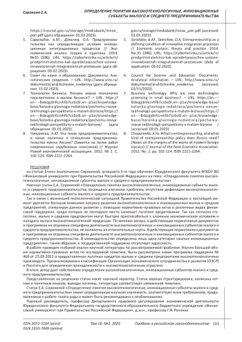 5. Саралидзе, А.М., Доничев, О.А. Предпринимательство как определяющее условие инновационных интеграционных процессов // Экономический анализ: теория и практика. 2014. №35 (386). URL: https://cyberleninka.ru/article/n/predprinimatelstvo-kak-opredelyayuschee-uslovie-innovatsionnyh-integratsionnyh-protsessov (дата обращения: 03.02.2023). EDN: SMPFMH