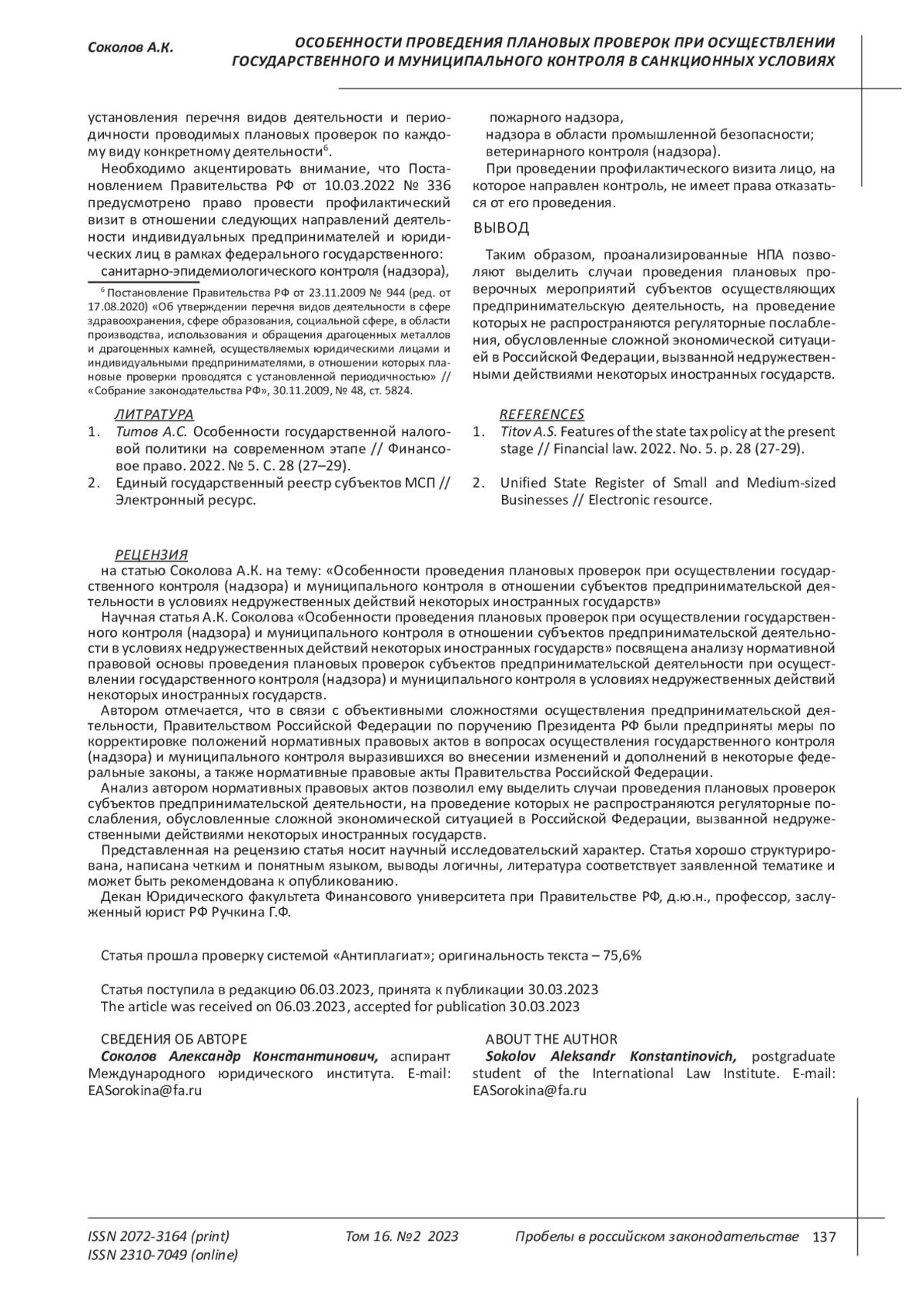 1. Титов А.С. Особенности государственной налоговой политики на современном этапе // Финансовое право. 2022. № 5. С. 28 (27-29). EDN: EFNLWS