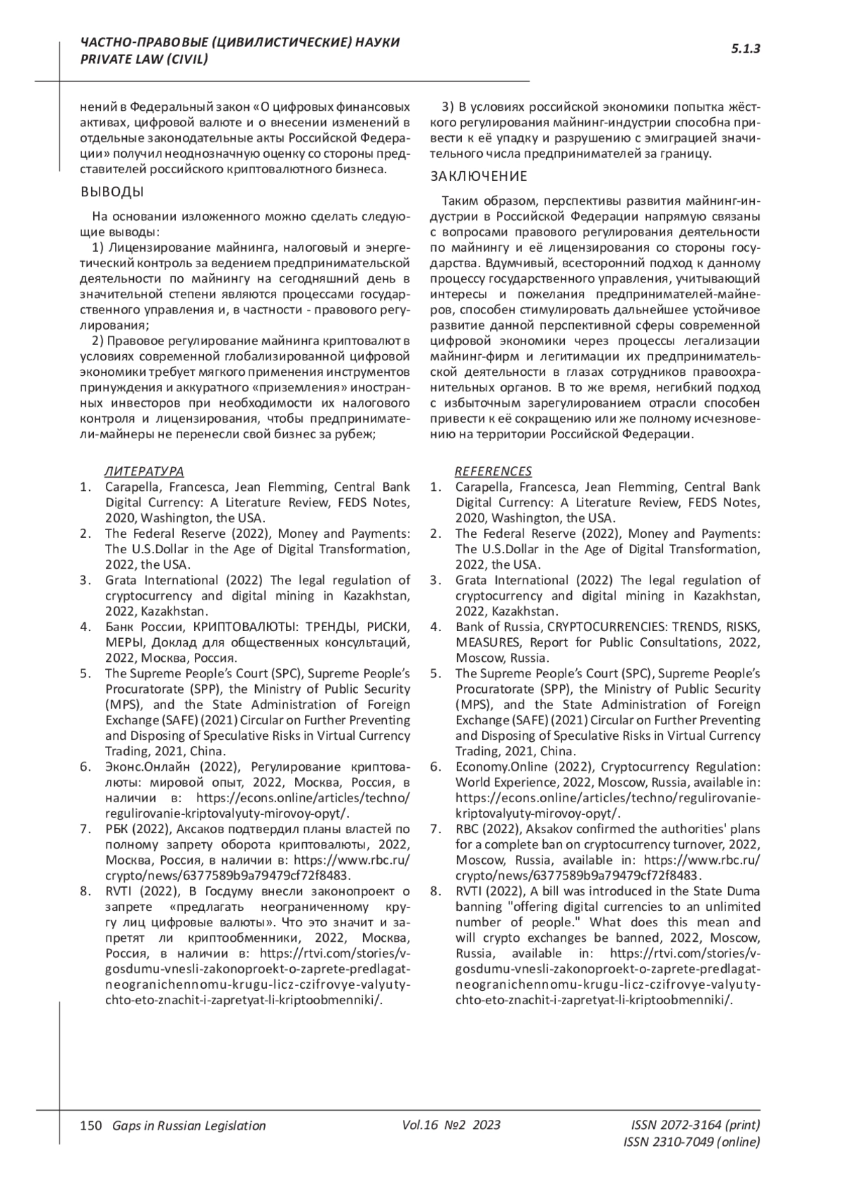 7. РБК (2022), Аксаков подтвердил планы властей по полному запрету оборота криптовалюты, 2022, Москва, Россия, в наличии в: https://www.rbc.ru/crypto/news/6377589b9a79479cf72f8483.
