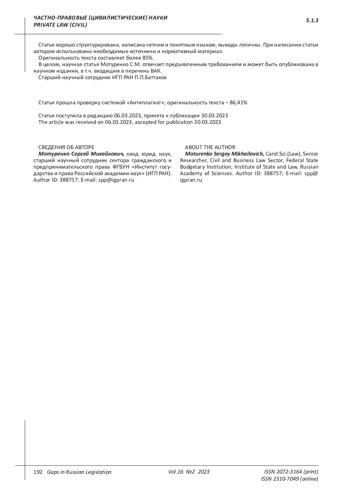 5. Проблемы развития и перспективы предпринимательского права в современных экономических условиях: монография / отв. ред. С.С. Занковский. М: Проспект, 2020. - 656 С. EDN: PFBNVF