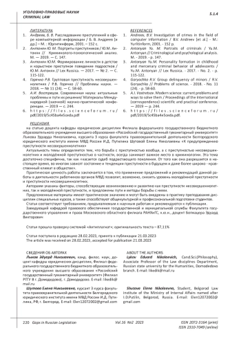 Antonyan Yu. M. Portraits of criminals / Yu.M. Antonyan // Criminological and psychological analysis. M. - 2019. - p. 147.