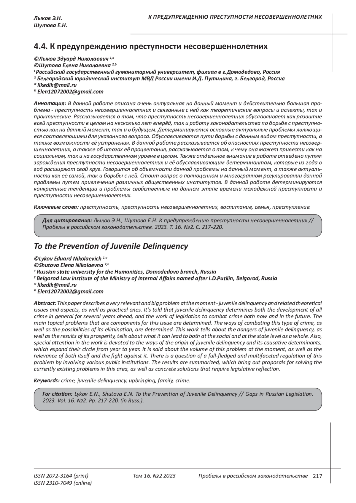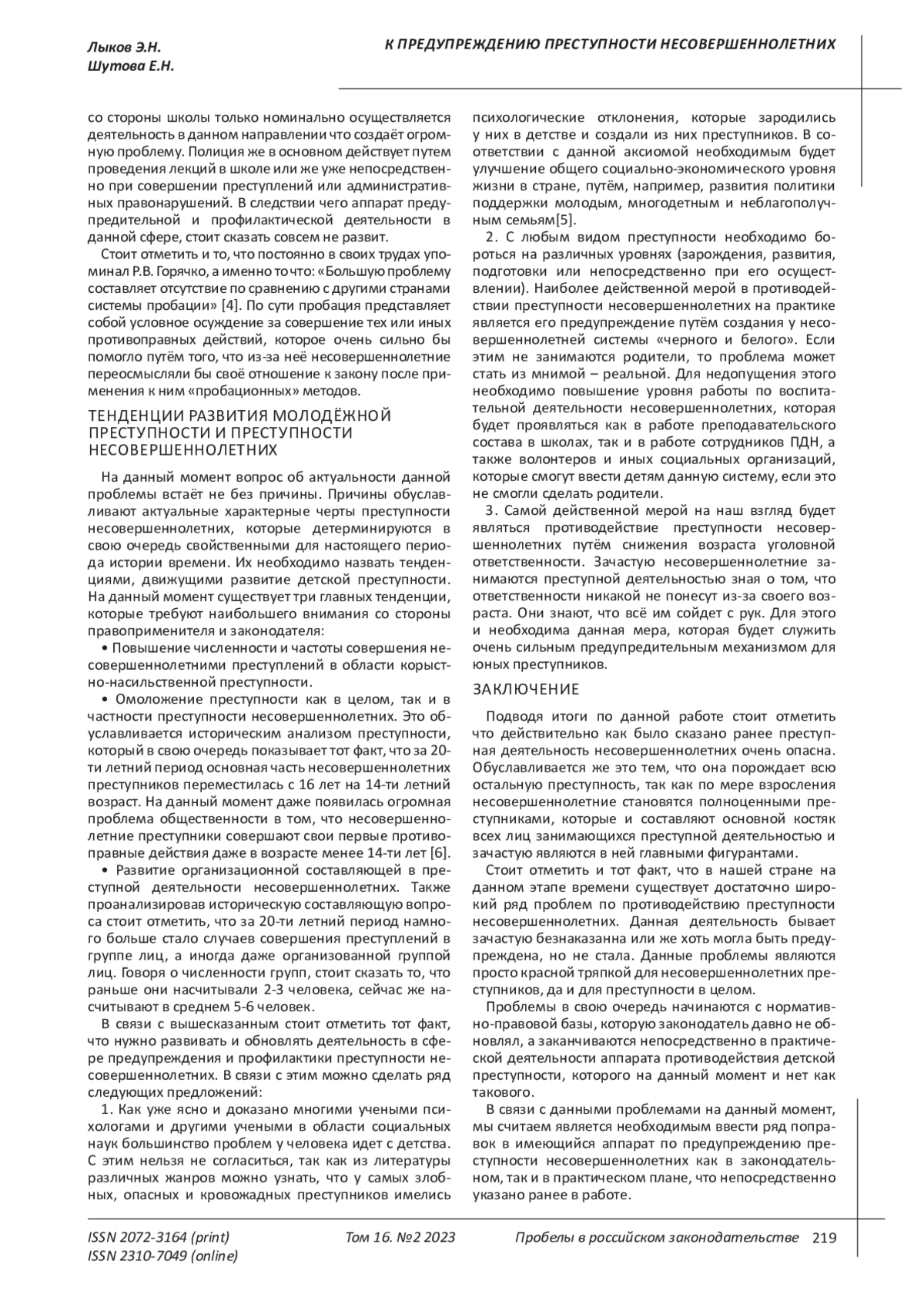 Antonyan Yu.M. Personality formation in childhood and mercenary criminal behavior of adolescents / Yu.M. Antonyan // Lex Russica. - 2017. - No. 2. - p. 115-122. EDN: YJJUST