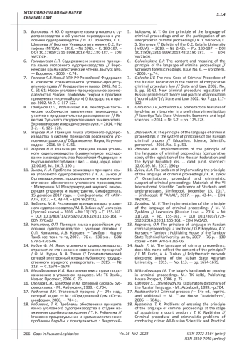 Zhoroev N.N. The principle of the language of criminal proceedings in the system of principles of the Russian criminal process // Education. Science, Scientific personnel. - 2016. No. 6. p. 51. EDN: XRIIVR