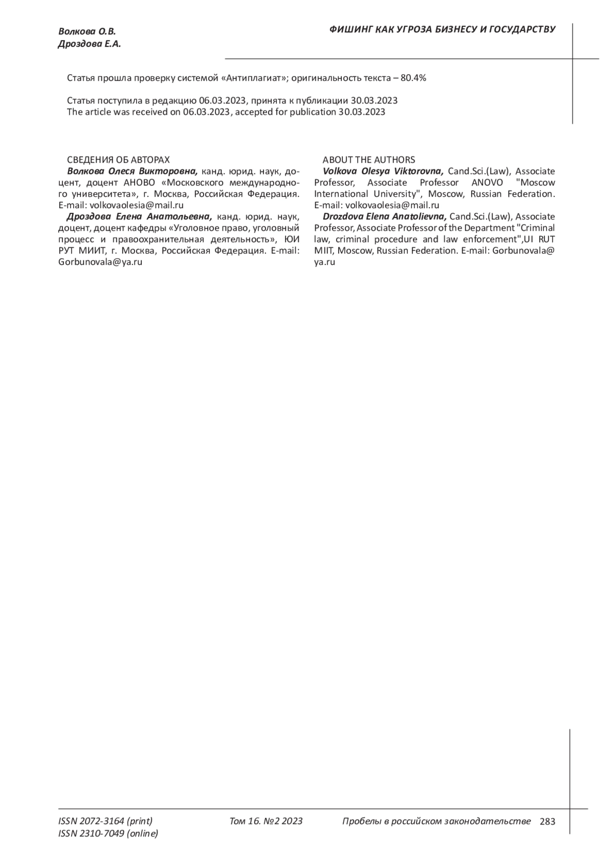 Antonov, I. O., Shalimov A. N. Actual problems of fraud investigation using computer information. [electronic resource]. Scientific Electronic Library - Access mode: URL: http://cyberleninka.ru/article/n/aktualnye-problemy-investigations-of-fraud-using-computer-information (date: 20.03.2023).