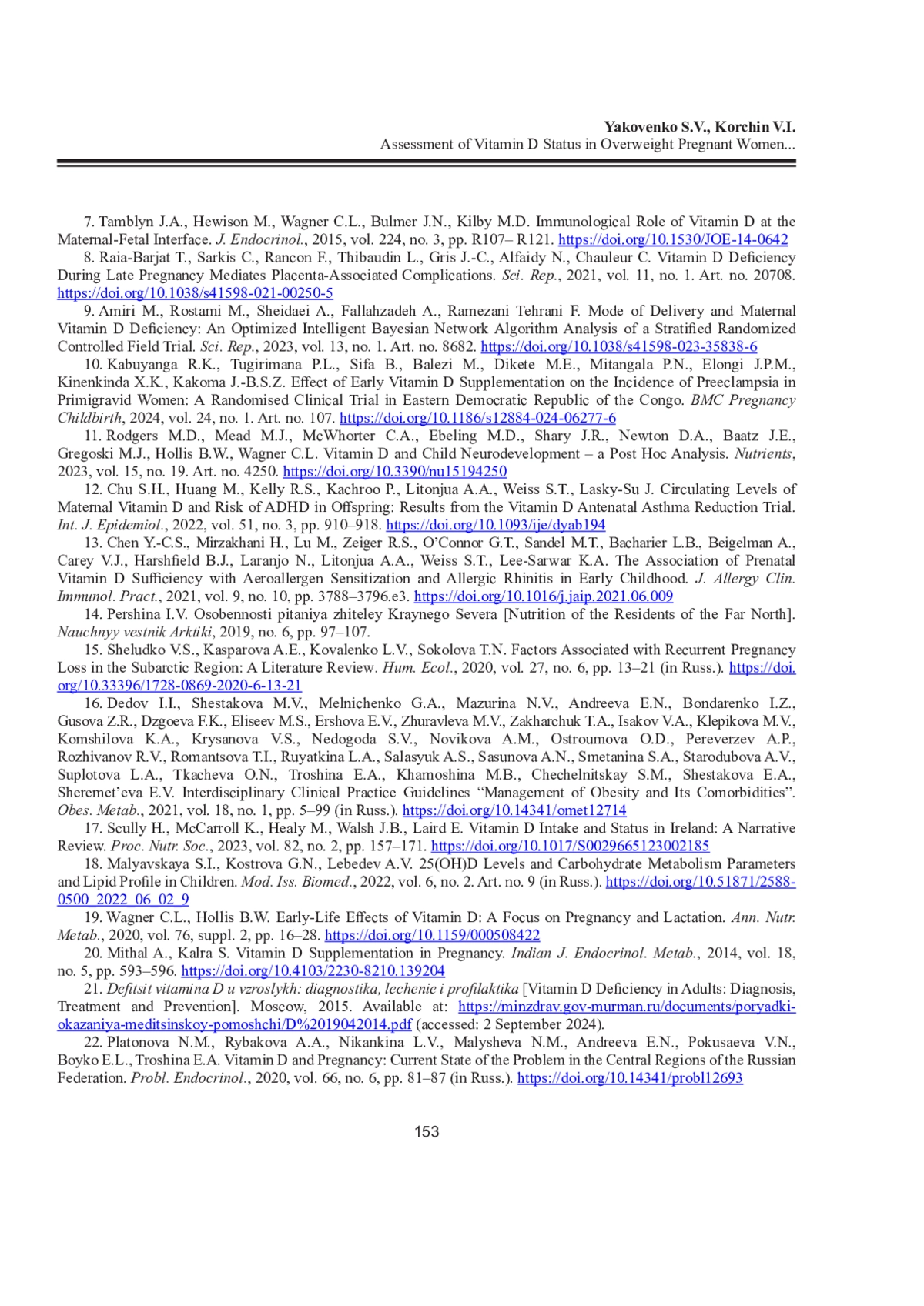 22. Платонова Н.М., Рыбакова А.А., Никанкина Л.В., Малышева Н.М., Андреева Е.Н., Покусаева В.Н., Бойко Е.Л., Трошина Е.А. Витамин D и беременность: современное состояние проблемы в центральных регионах РФ // Проблемы эндокринологии. 2020. Т. 66, No 6. С. 81-87. DOI: 10.14341/probl12693 EDN: IKSEBF
