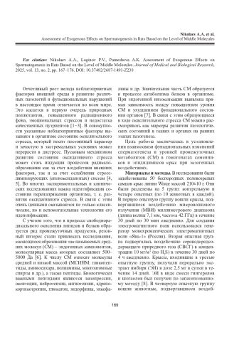 Статья: ИССЛЕДОВАНИЕ ЭКЗОГЕННЫХ ВОЗДЕЙСТВИЙ НА СПЕРМАТОГЕНЕЗ КРЫС ПО УРОВНЮ СРЕДНИХ МОЛЕКУЛ (2025)