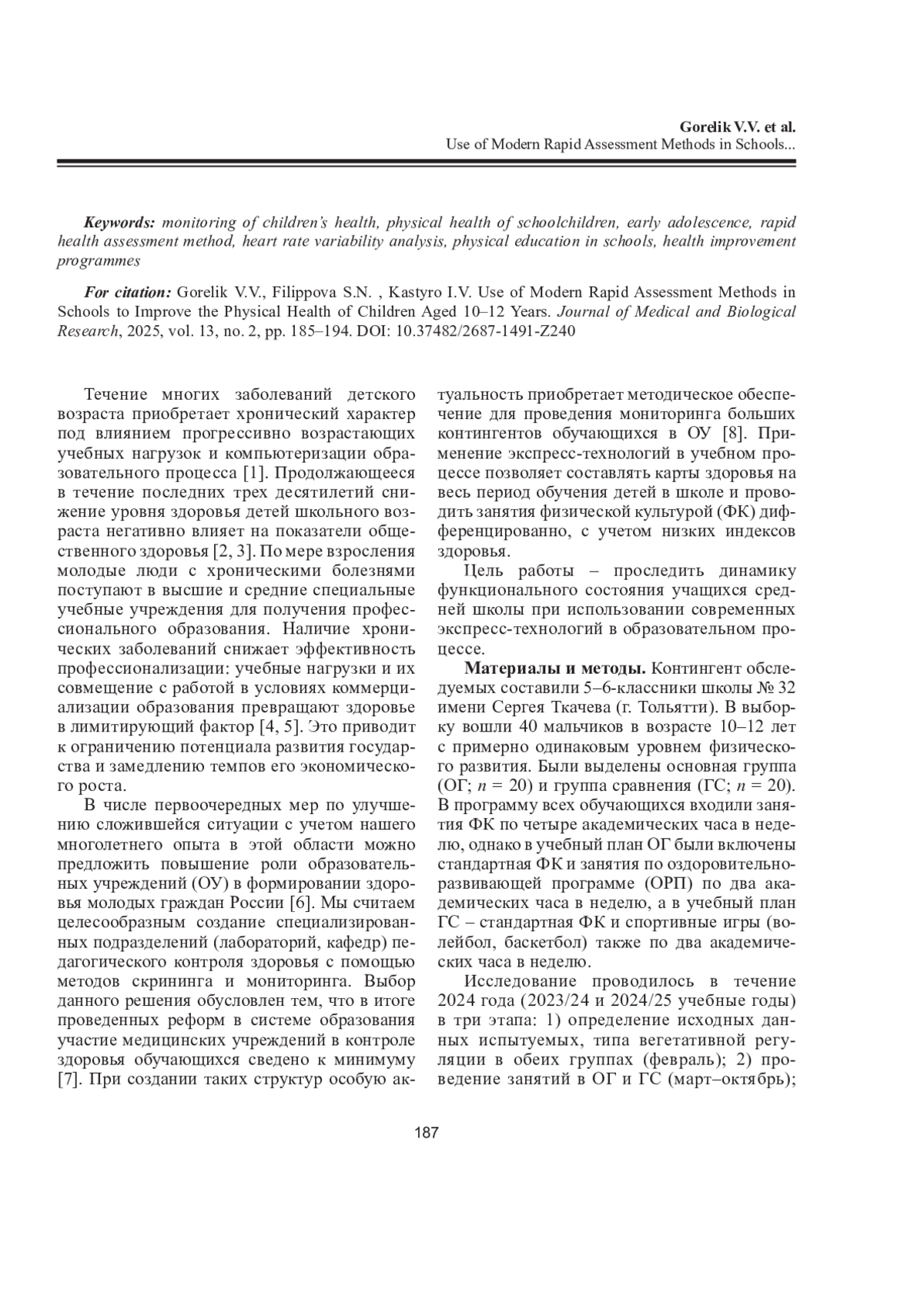2. Власова Т.И., Спирина М.А., Безбородова А.П., Ледяйкина Л.В., Рыжов А.В. Гендерные особенности вегетативной регуляции сердечной деятельности у детей-спортсменов // Изв. высш. учеб. заведений. Поволж. регион. Мед. науки. 2023. No 2 (66). С. 134-143. DOI: 10.21685/2072-3032-2023-2-14 EDN: FNMWIS