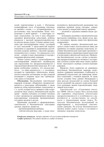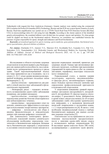 Ключевые фразы: персонализированный подход к спортивным тренировкам, спортивная медицина, полиморфизм генов, биохимические тесты, спортивная специализация, физические способности спортсменов