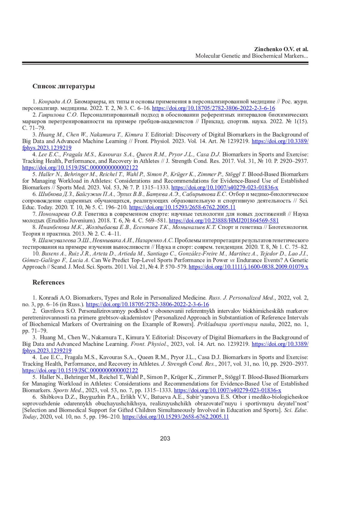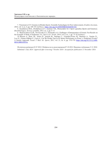 Статья: МОЛЕКУЛЯРНО-ГЕНЕТИЧЕСКИЕ И БИОХИМИЧЕСКИЕ МАРКЕРЫ ДЛЯ ОЦЕНКИ ФИЗИЧЕСКИХ СПОСОБНОСТЕЙ СПОРТСМЕНОВ (2025)