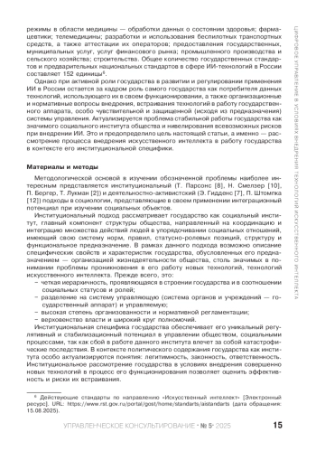 Статья: ИИ-технологии в государственном управлении: институциональные аспекты и риски применения (2025)