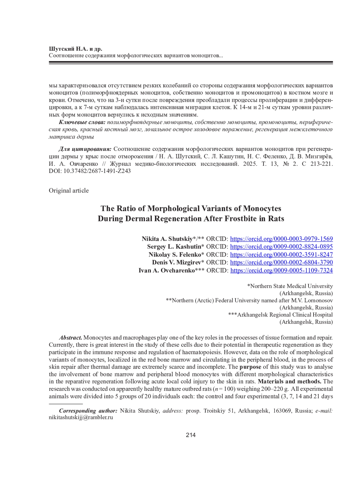 15. Шутский Н.А., Кашутин С.Л., Шагров Л.Л., Малявская С.И., Холопов Н.С. Содержание клеток в зонах дермы крыс в норме и на фоне метаболического синдрома при восстановлении после холодовой травмы // Журн. мед.-биол. исследований. 2022. Т. 10, No 2. С. 87-99. DOI: 10.37482/2687-1491-Z094 EDN: HCPZDC