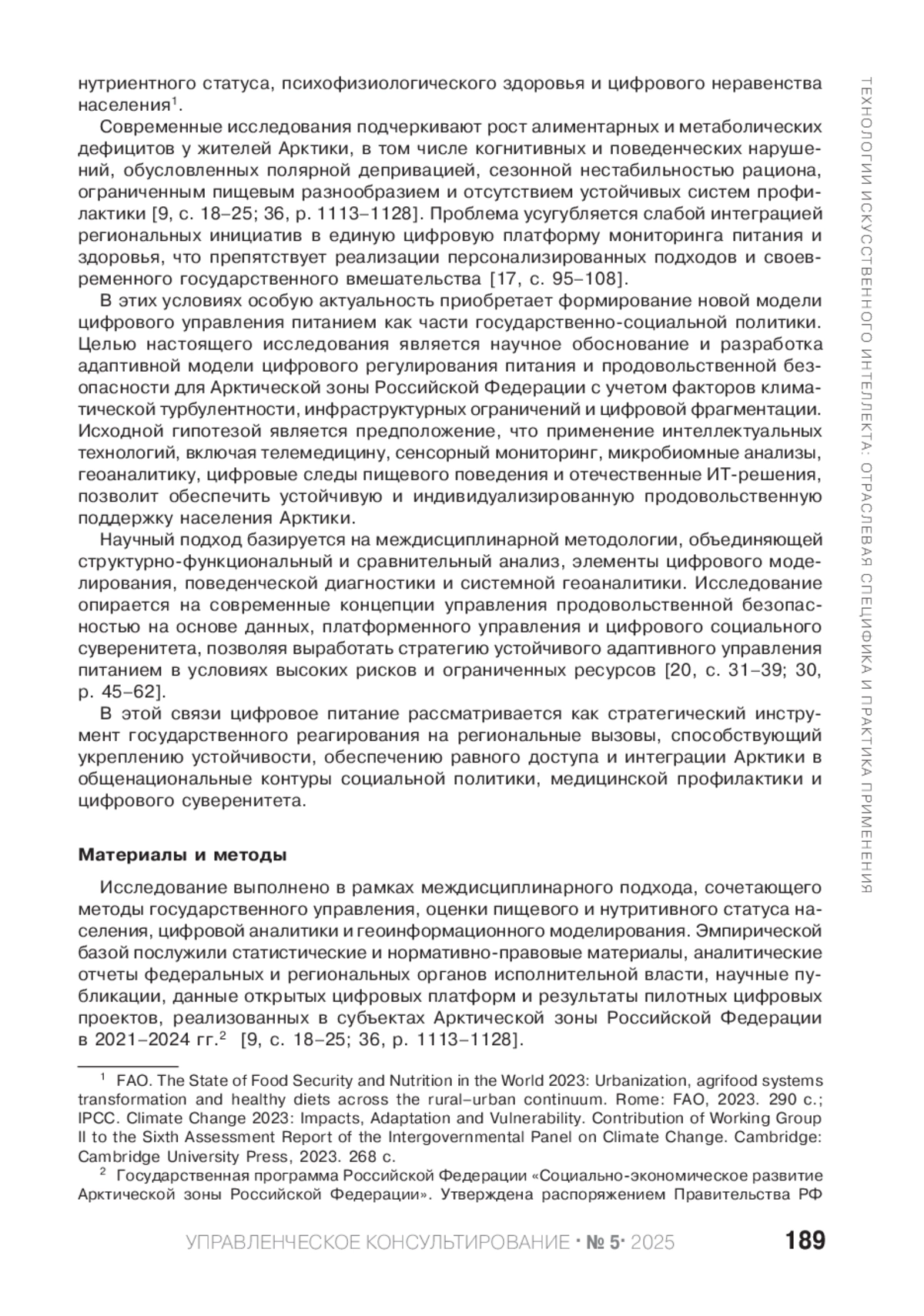 Статья: Цифровое управление питанием и продовольственной безопасностью в Арктике (2025)
