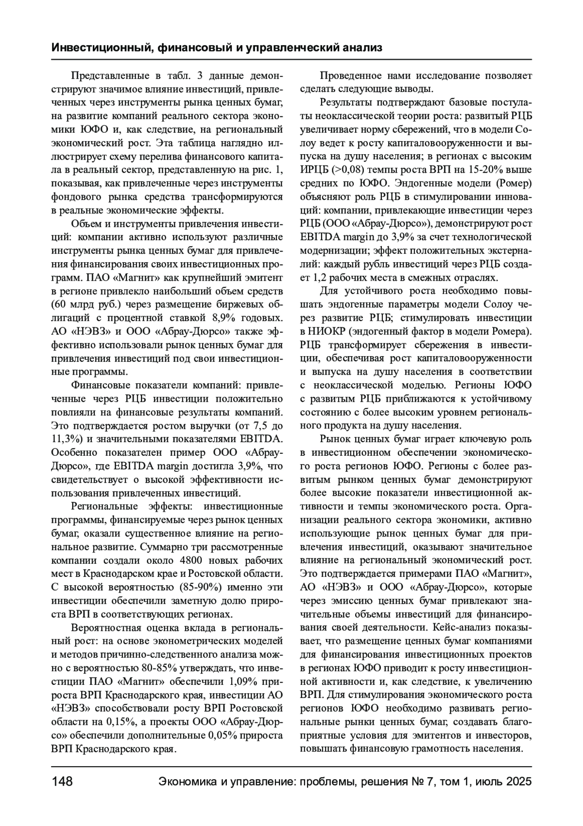 Статья: РОЛЬ РЫНКА ЦЕННЫХ БУМАГ В ИНВЕСТИЦИОННОМ ОБЕСПЕЧЕНИИ ЭКОНОМИЧЕСКОГО РОСТА РЕГИОНА (2025)