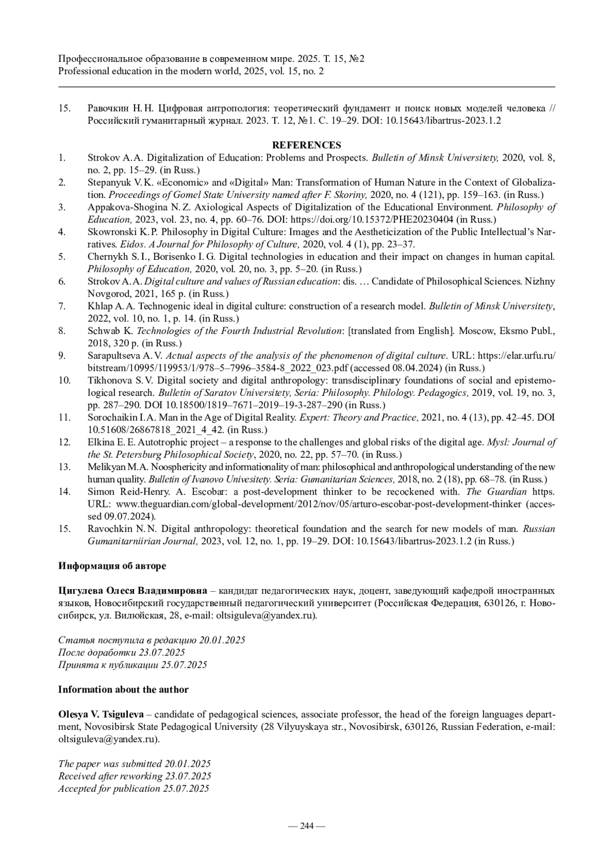 6. Строков А.А. Цифровая культура и ценности российского образования: дис. … канд. филос. наук. Нижний Новгород, 2021. 165 с.