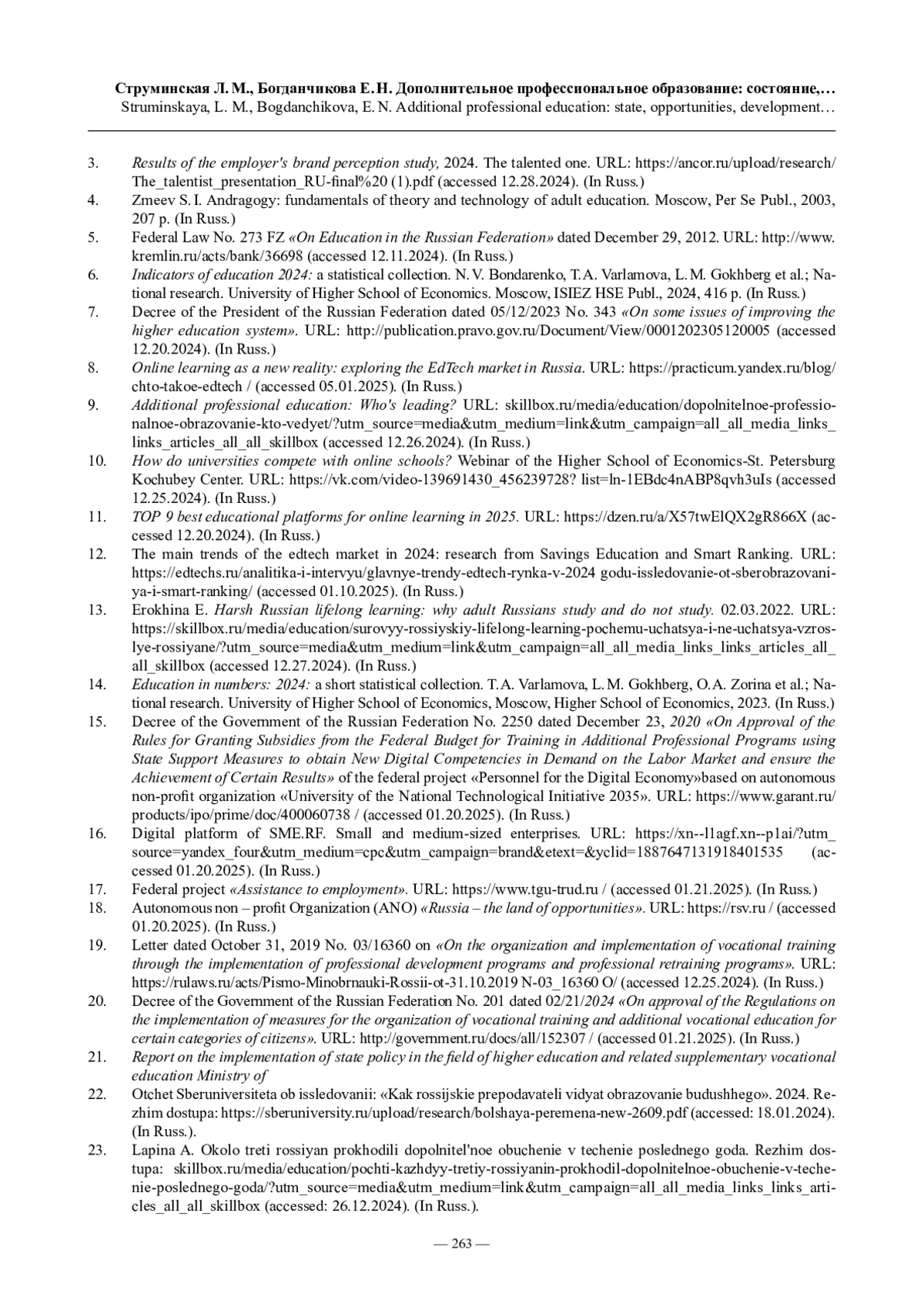 13. Ерохина Е. Суровый российский lifelong learning: почему учатся и не учатся взрослые россияне. 02.03.2022. URL: https://skillbox.ru/media/education/surovyy-rossiyskiy-lifelong-learning-pochemu-uchatsya-i-ne-uchatsyavzroslye-rossiyane/?utm_source=media&utm_medium=link&utm_campaign=all_all_media_links_links_articles_all_all_skillbox (дата обращения: 27.12.2024).