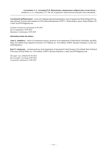 8. Осипенко Л.Е., Коротков А.В. Текстовые генеративные нейросети в исследовательской деятельности студентов // Мир науки, культуры, образования. 2024. № 4 (107). С. 90-93.