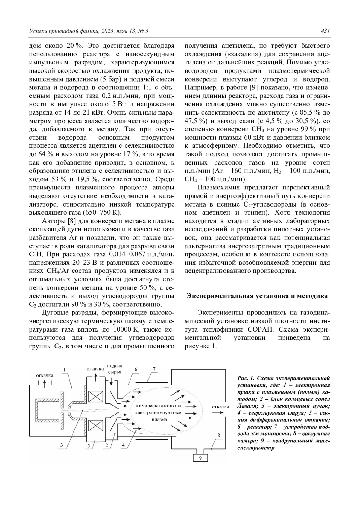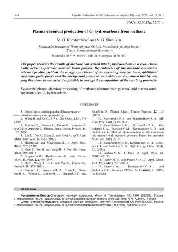 Представлены результаты конверсии метана в углеводороды группы С2 в холодной, химически активной, сверхзвуковой электронно-пучковой плазме. Получены зависимости коэффициента использования метана и выхода продуктов от энергии и тока активирующего пучка электронов, дополнительной электромагнитной мощности, а также фонового давления. Показано, что за счет изменения вышеуказанных параметров возможно изменение состава получаемых продуктов.