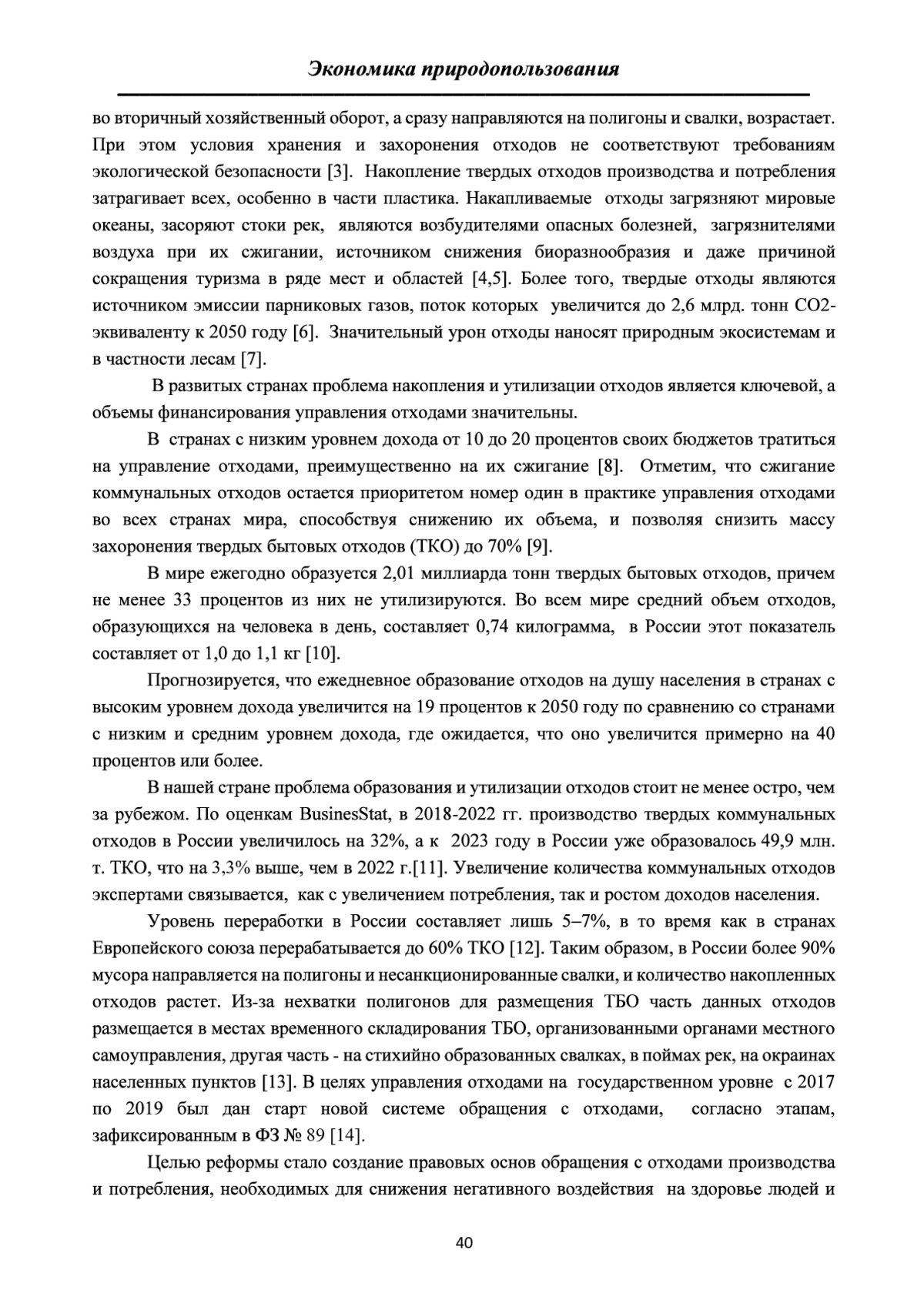 3. Соколов Ю. И. Риски мусорной экологической катастрофы России // Проблемы анализа риска. 2018. №2. URL: https://cyberleninka.ru/article/n/riski-musornoy-ekologicheskoy-katastrofy-rossii (дата обращения: 08.02.2025).