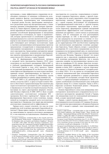 9. Шишелина Л.Н. Программа “Восточное партнерство” накануне десятилетия // Научно-аналитический вестник Института Европы РАН. 2018. № 6. С. 26-35. EDN: YVRETR