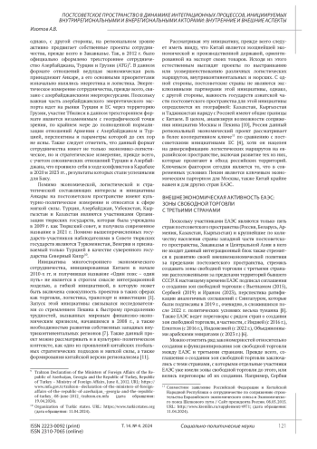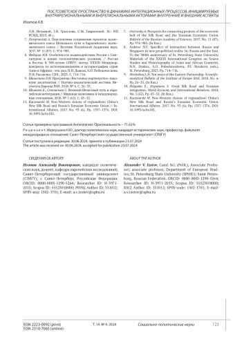 11. Kaczmarski M. Non-Western visions of regionalism: China’s New Silk Road and Russia’s Eurasian Economic Union. International Affaires. 2017. No. 93 (6). Pp. 1357-1376. DOI: 10.1093/ia/iix182