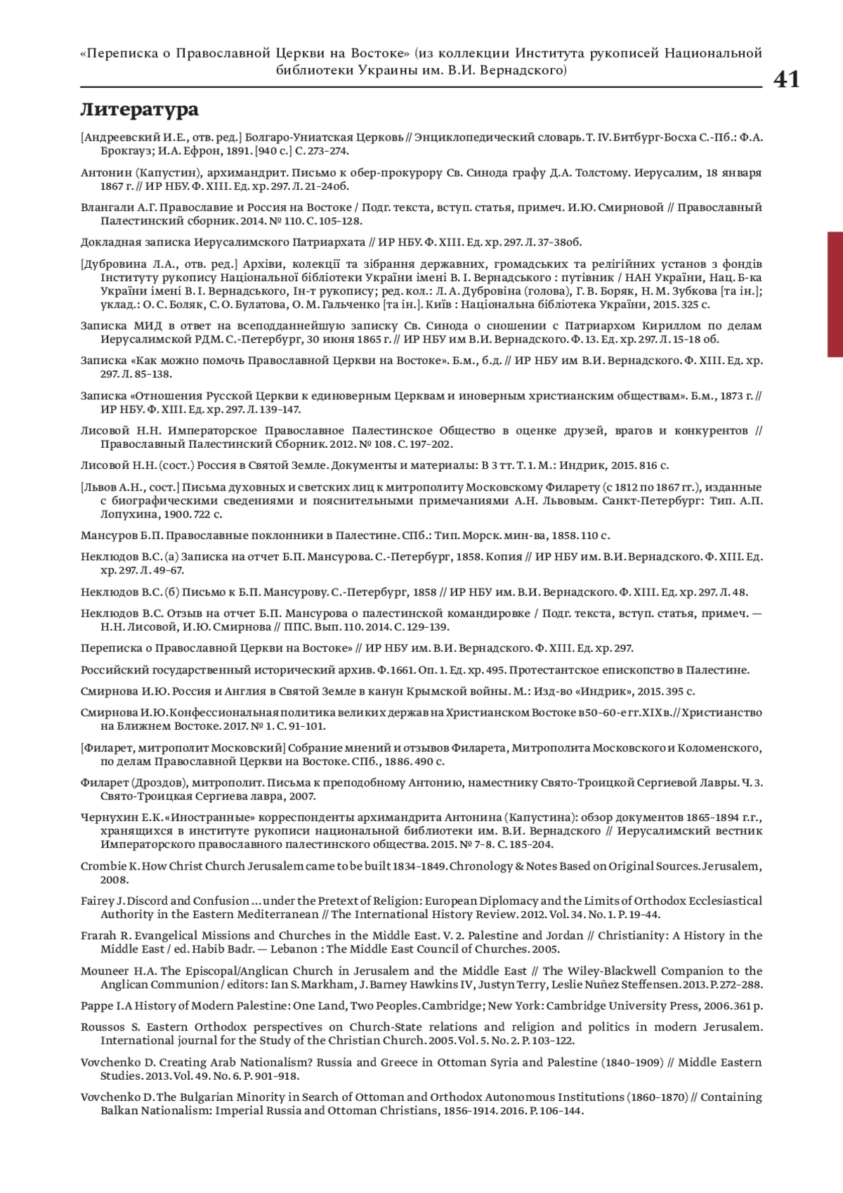18. Смирнова И.Ю. Россия и Англия в Святой Земле в канун Крымской войны. М.: Изд-во “Индрик”, 2015. 395 с.