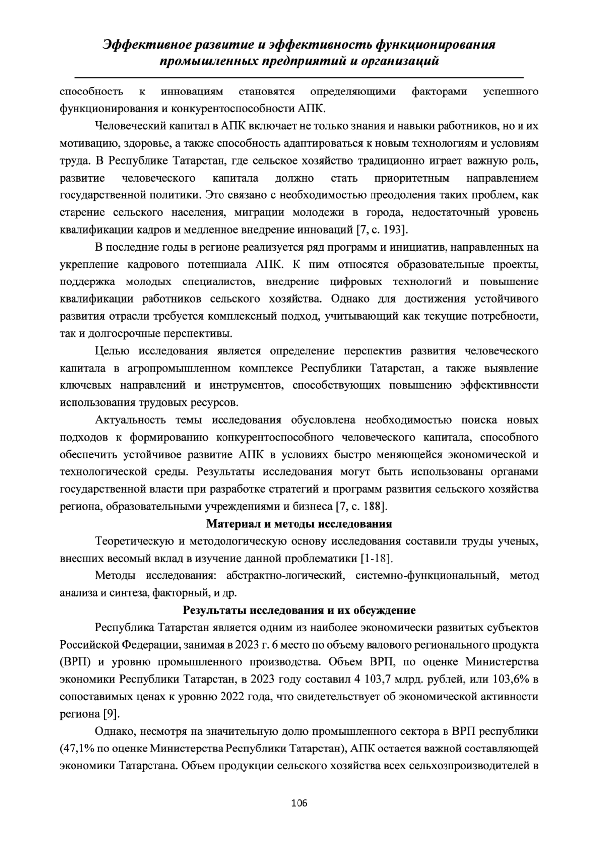 Статья: ПЕРСПЕКТИВЫ РАЗВИТИЯ ЧЕЛОВЕЧЕСКОГО КАПИТАЛА В АГРОПРОМЫШЛЕННОМ КОМПЛЕКСЕ РЕСПУБЛИКИ ТАТАРСТАН (2025)