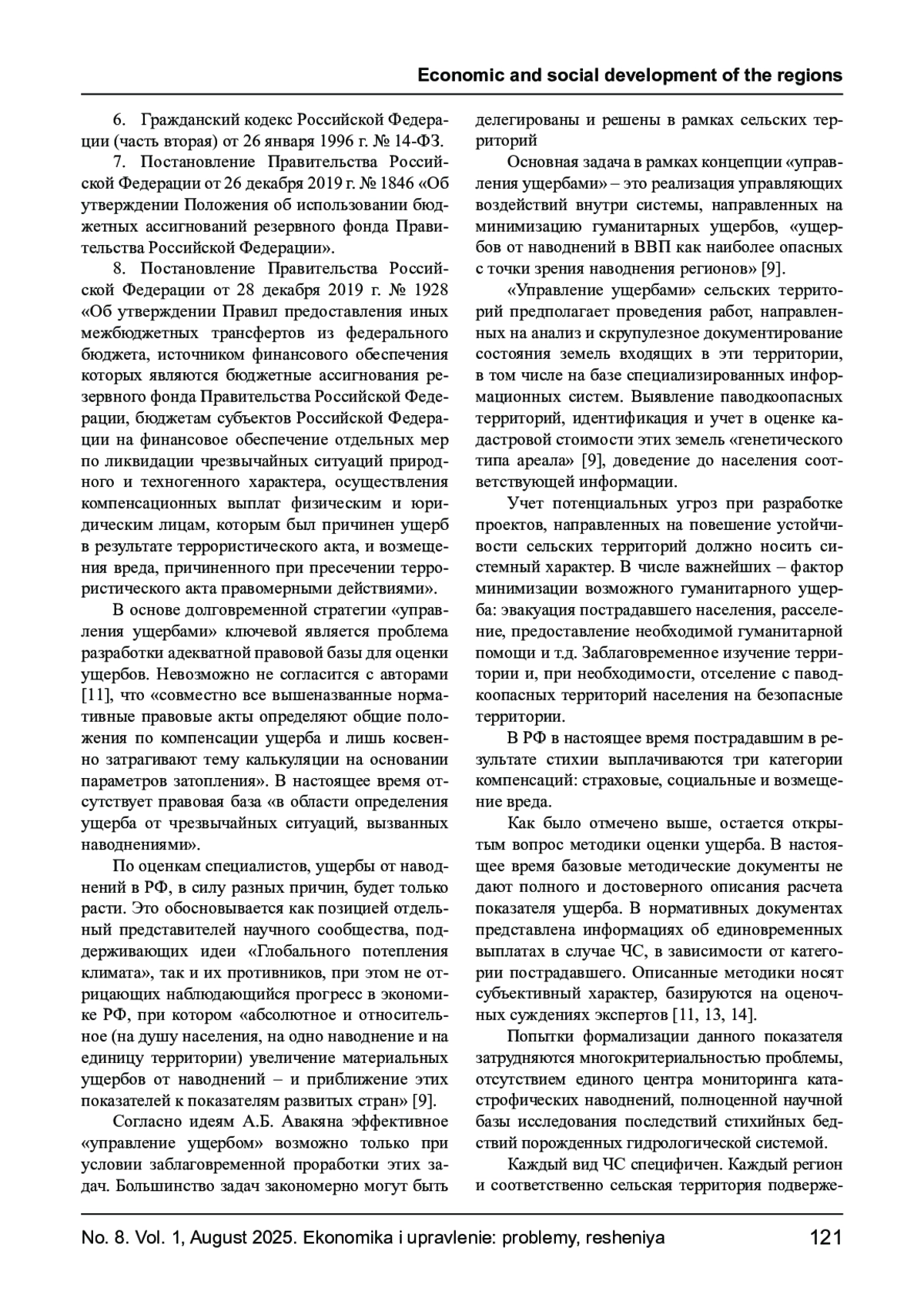 11. Щеглов А. Н., Чяснавичюс Ю. К., Ковалева Д. С., Котосонов А. С./ Анализ нормативных и методических основ оценки ущерба объектам капитального строительства от затоплений в России: проблемы и перспективы // Технологии гражданской безопасности. 2023. №2 (76). URL: https://cyberleninka.ru/article/n/analiz-normativnyh-i-metodicheskih-osnov-otsenki-uscherba-obektam-kapitalnogo-stroitelstva-ot-zatopleniy-v-rossii-problemy-i (дата обращения: 24.07.2025). EDN: USVAJF